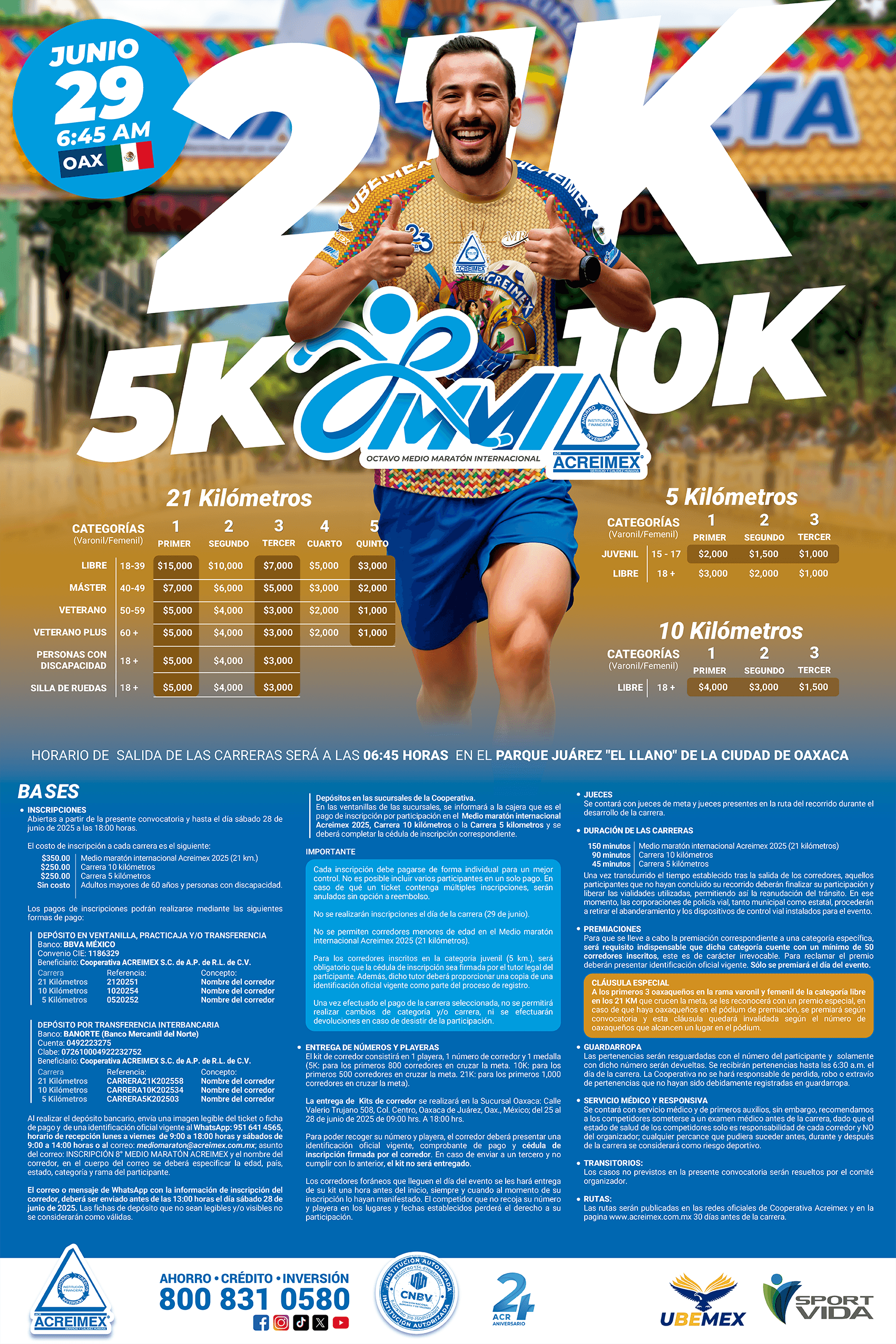 Participa en el Octavo Medio Maratón ACREIMEX 2025 en Oaxaca: 5K, 10K y 21K